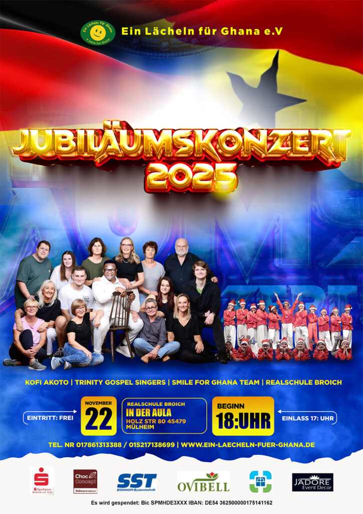 Nachdem das Konzert im vergangenen Jahr leider aufgrund technischer Probleme entfallen musste, laden wir Sie nun herzlich zum Jubiläumskonzert am 22. November in die Aula der Realschule Broich ein.